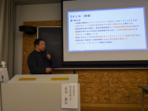 第一報告の山﨑朗「地域創生の新しいデザイン」では、国の地方創生においてパラダイム転換が進んでおり、例えば、政令指定都市の人口増加率(2020年-2024年)であっても、3分の1の自治体が人口減少局面にあり、人口減少の加速が指摘された。その上で、高市政権におけるサナエノミクスと地方創生の関係を明らかにした。第二報告の中山裕太「北海道の新しい地域創生」では、北海道の行政システム、地域特性を指摘した上で、北海道の産業ポテンシャルとして、大規模農畜産業、半導体産業、観光産業が指摘された。その中で観光産業の地域活性化効果の限界を指摘し、第1次産業、第2次産業の拡大の方向性が示された。第三報告の庄司義弘「起業を呼び込む地域プラットフォーム」では、地域プラットフォームの理論枠組みを活用して、山形県南陽市にある漆山古民家再生シェアスペース「つるのこ」の事例研究を行った。